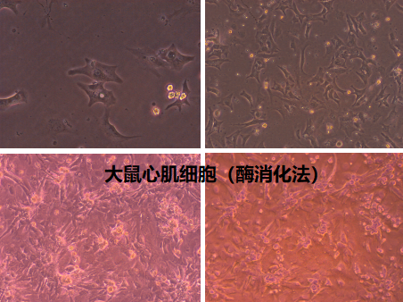 简述:新生SD大鼠,取心室肌,0.1%胰酶,35℃消化15min,收取上清,重复这一步骤4-5次。前两次以血红细胞和成纤维类细胞为主,弃去,收取后几次的细胞,PBS洗涤后,L-DMDM培养基铺板,37℃ ,CO2培养箱培养;1h后,将未贴壁的细胞已知新培养皿中继续培养;24h后冲洗换液;