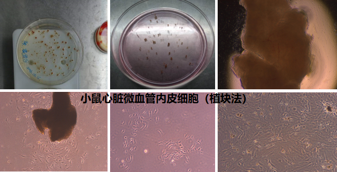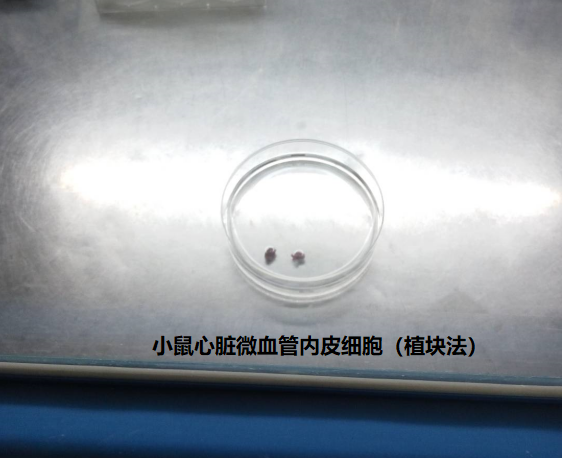 简述:约1月龄小鼠,麻醉固定后,开胸减去心脏,放入D-HANKS缓冲液中,冲洗两遍,去除大血管,左右心房及右心室和室间隔,保留左心室肌。去除内、外膜,剪碎心室肌至1mm3左右的小块儿,滴加1ml胎牛血清,均匀接种于10cm培养皿中,,放入37℃, 5% CO2培养箱中培养;4小时后,添加7.5ml含有20%FBS的高糖DMEM培养基,继续培养,约48小时后有细胞游离出。